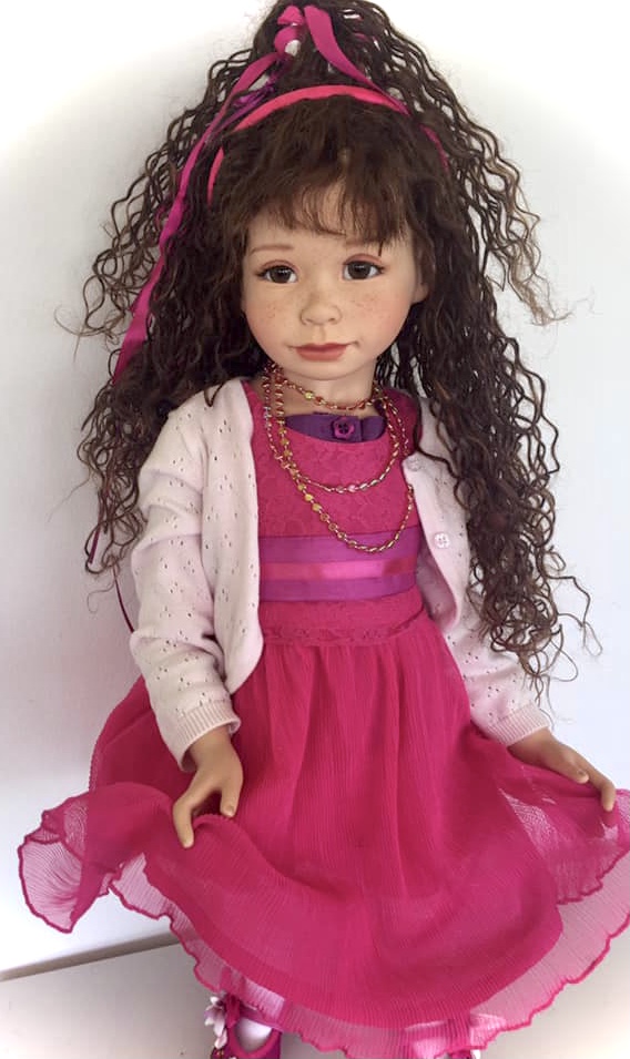 Betty is an original Swiss Artist doll made of high quality vinyl with a human hair hand knotted wig and glass eyes. She is designed, modeled, painted and clothed by the artist Maja Bill herself.